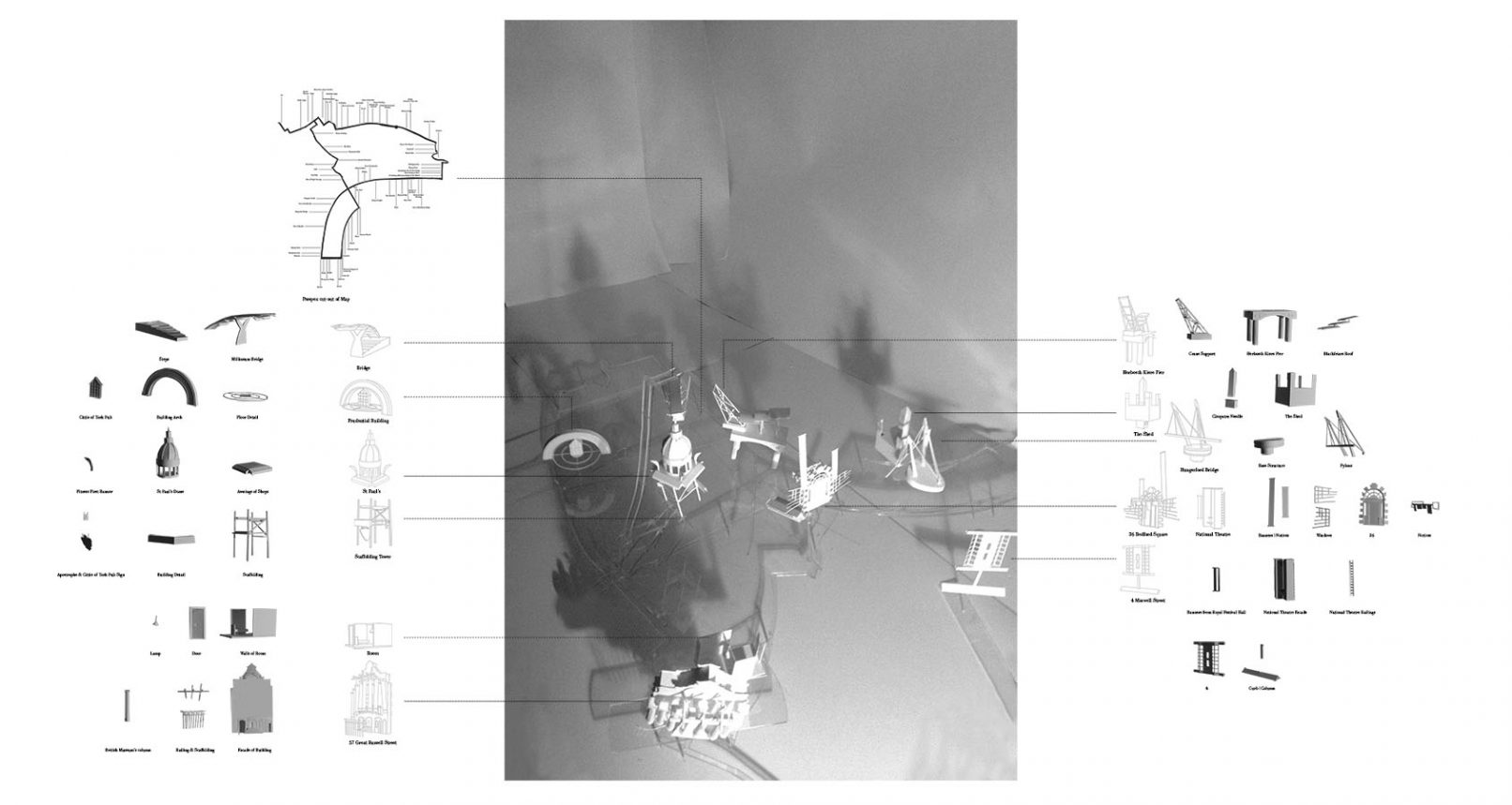 Fragmented Facets embodies the way a person first experiences a new unchartered, unfamiliar land. The fragmentation becomes increasingly detailed through the repetitive wandering of the same route. Through this collection of fragments from wandering, the fragments come together and piece themselves, generating my individual image of the city, a facet of a London unique to myself. This collection varies from person to person and no two facets will be the same. Eventually, a land with a thousand faces will emerge.